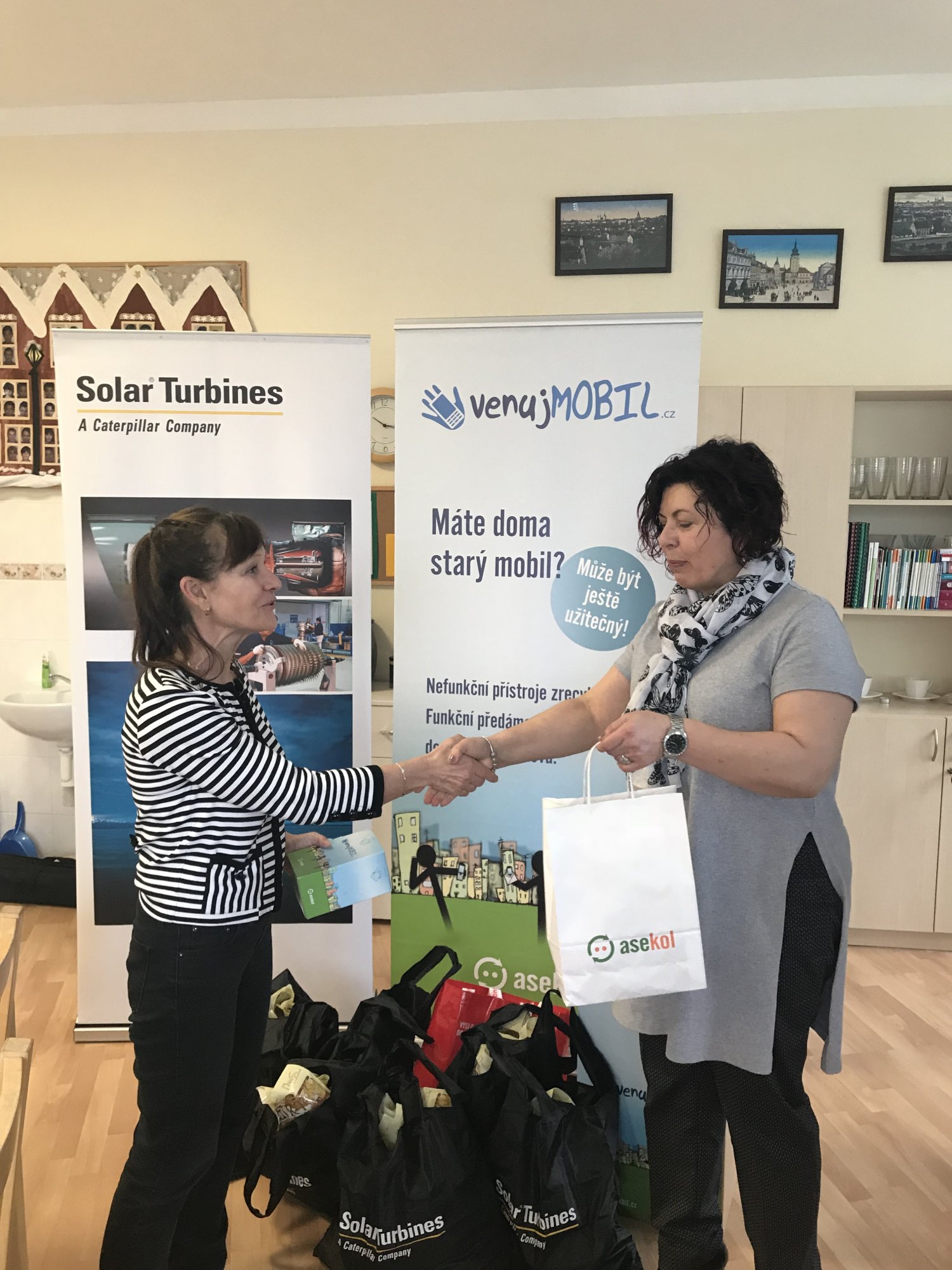 Společnost Solar Turbines EAME dlouhodobě přispívá k ochraně životního prostředí. Pro své zaměstnance často zprostředkovává školení v environmentální oblasti, ale i projekty jako je Věnuj mobil, zaměřené na sociální odpovědnost. V areálu firmy mají pro veřejnost volně dostupný červený kontejner na drobné elektro a každým sebraným kilogramem tak přispívají jednu korunu Národní radě osob se zdravotním postižením ČR. Podle informací Milana Windische sběr mobilních telefonů i dalšího elektra bude pokračovat a snad brzy poneseme společně další dárek do dětského domova.